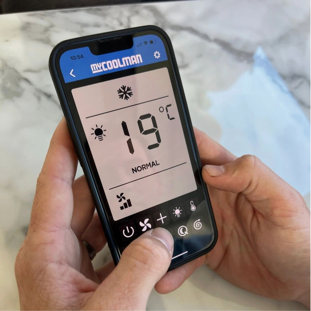 Built for Australian weather extremes, the myCOOLMAN AC uses inverter technology for reduced power consumption and steady temperature control. With Bluetooth connectivity, you can adjust your climate from your smartphone — no remote or manual dials required.